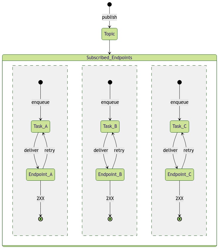 subscribed endpoint and guarantee successful delivery to each one of them.